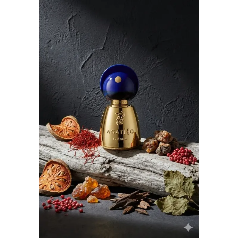 Композиция открывается ярким фруктовым аккордом: сладковатый инжир и редкий арбутус (земляничное дерево) переплетаются с искристой кислинкой лимона и нежной терпкостью айвы. В сердце аромата раскрывается пряная симфония: шафран дарит бархатистую теплоту, кориандр добавляет пикантную остроту, розовый перец — лёгкое жгучее мерцание, а янтарь и мирра окутывают композицию смолистой, дымной глубиной. База — это настоящий ода восточной роскоши: благородный уд, землистый пачули, сладкий бальзам толу, мягкий мускус, кремовый сандал и суховатый кедр создают мощный, многослойный и невероятно стойкий шлейф.