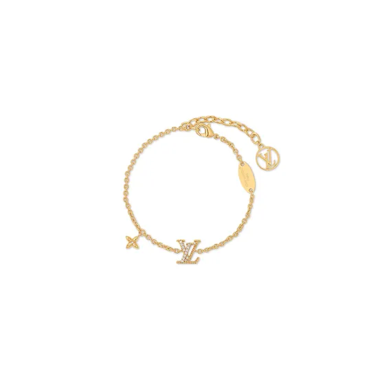 Изящный браслет LV Iconic отличают выразительные символы Дома. Регулируемая цепочка украшена инициалами LV, инкрустированными сверкающими стразами. Миниатюрный цветок Monogram и декоративная пластина с гравировкой подчёркивают верность традициям Louis Vuitton. Классическая подвеска LV Circle завершает дизайн.