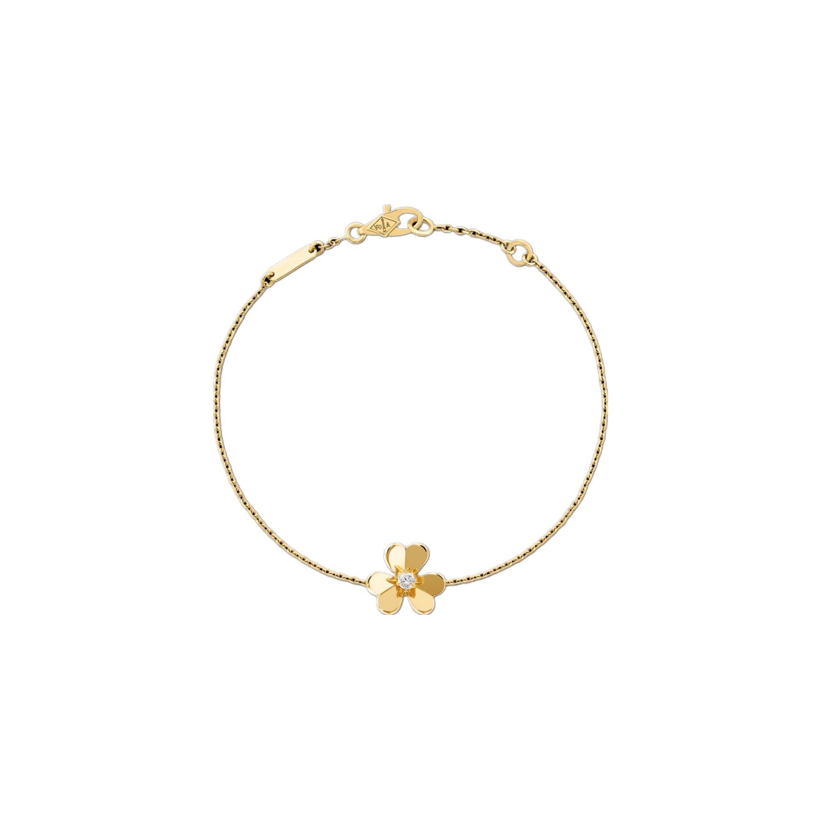 Невесомые лепестки, трепетные движения, сияние драгоценного камня - браслет Frivole от Van Cleef & Arpels воплощает саму суть цветочной красоты. Уникальная коллекция Frivole олицетворяет страсть Van Cleef & Arpels к природе и ее совершенным формам. Асимметричный дизайн украшений, выполненных из золота с зеркальной полировкой в виде лепестков в форме сердца, усиливает сияние и игру света на коже и создает неповторимый эффект.