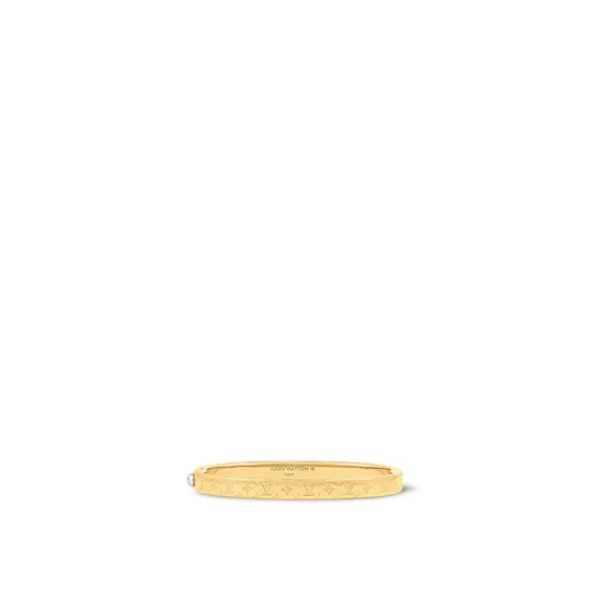 Браслет Nanogram — превосходный образец мастерства Louis Vuitton. Изящный тонкий обруч из позолоченной латуни украшает искусная гравировка в виде легендарного узора Monogram. Элегантный универсальный аксессуар придаст женственные ноты образу и станет отличным подарком поклонницам Дома.