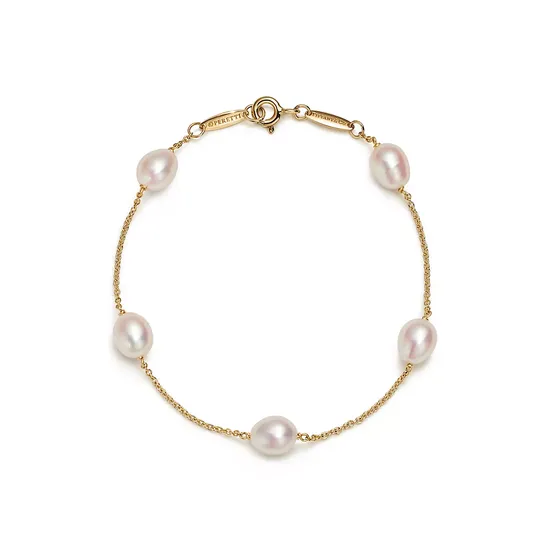 Браслет Pearls by the Yard от Tiffany Co — это элегантное ювелирное изделие, которое сочетает в себе изысканность и простоту. Он состоит из жемчужин, которые чередуются с золотыми звеньями, создавая легкий и воздушный вид. Такой браслет часто носится как самостоятельное украшение или в сочетании с другими ювелирными изделиями. Он подходит для различных случаев — от повседневного ношения до более формальных мероприятий. Размер - 18.35 см.