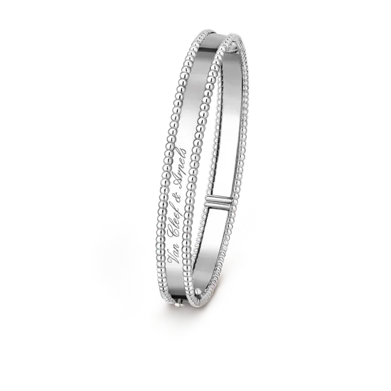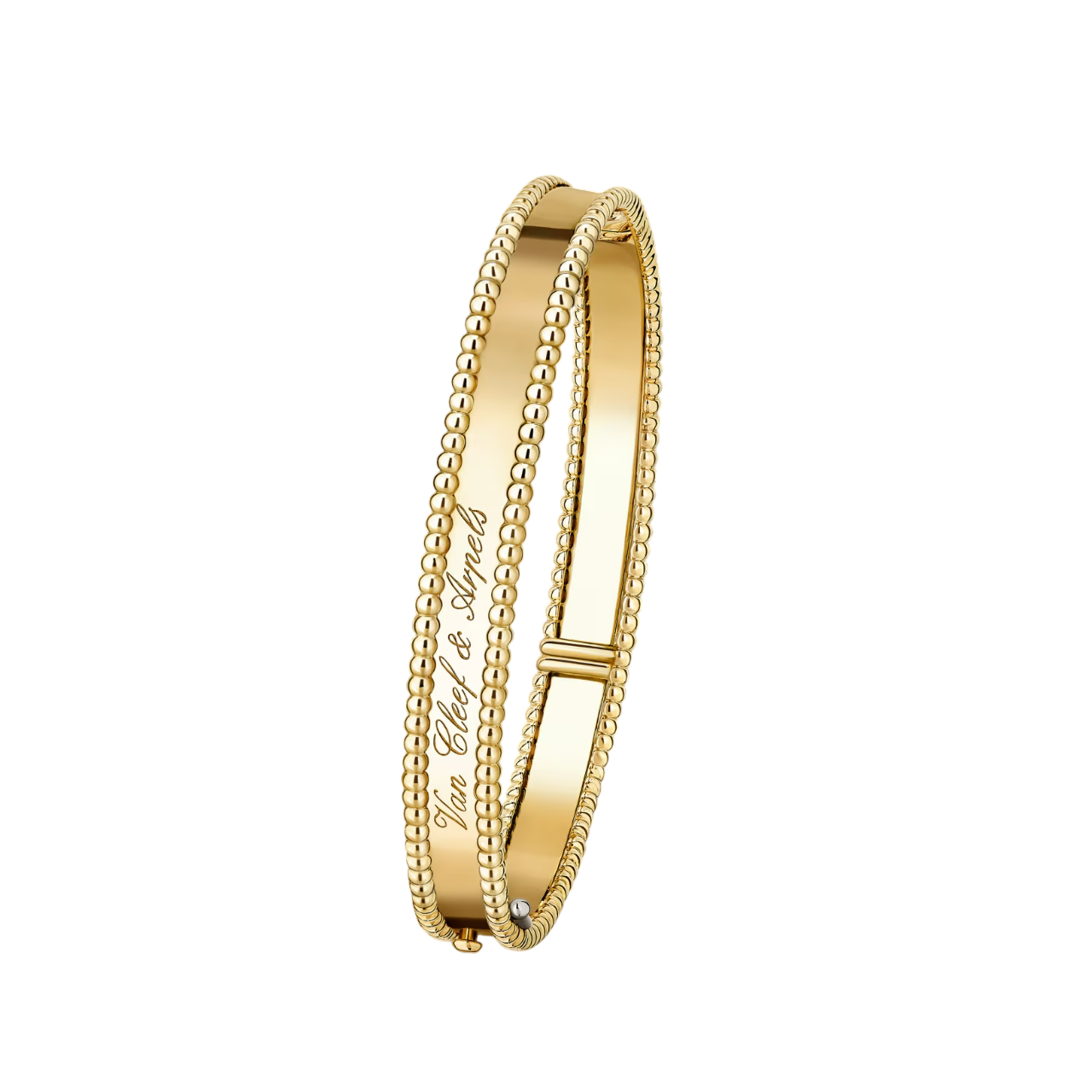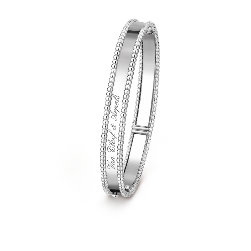 Модели коллекции Perlee signature украшены каллиграфической надписью Van Cleef & Arpels. Отполированные до зеркального блеска, они отличаются современным дизайном и женственностью.