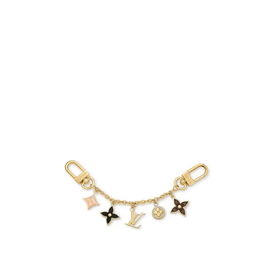 Брелок Spring Street отличает эффектное сочетание материалов и форм. Изящный аксессуар украшают миниатюрные подвески в форме легендарных цветов Monogram и инициалов LV. Отделка светло-розового цвета и детали из канвы Monogram подчёркивают женственный дизайн. Гравировка Louis Vuitton отражает верность традициям Дома.