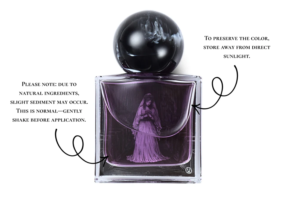 Благодаря использованию натуральных ингредиентов возможно наличие лёгкого осадка — это нормально, перед нанесением рекомендуется слегка встряхнуть флакон. Если при получении парфюм выглядит мутным, со временем он станет прозрачным. Цвет жидкости может незначительно отличаться от партии к партии, так как аромат создан преимущественно на основе натуральных компонентов.