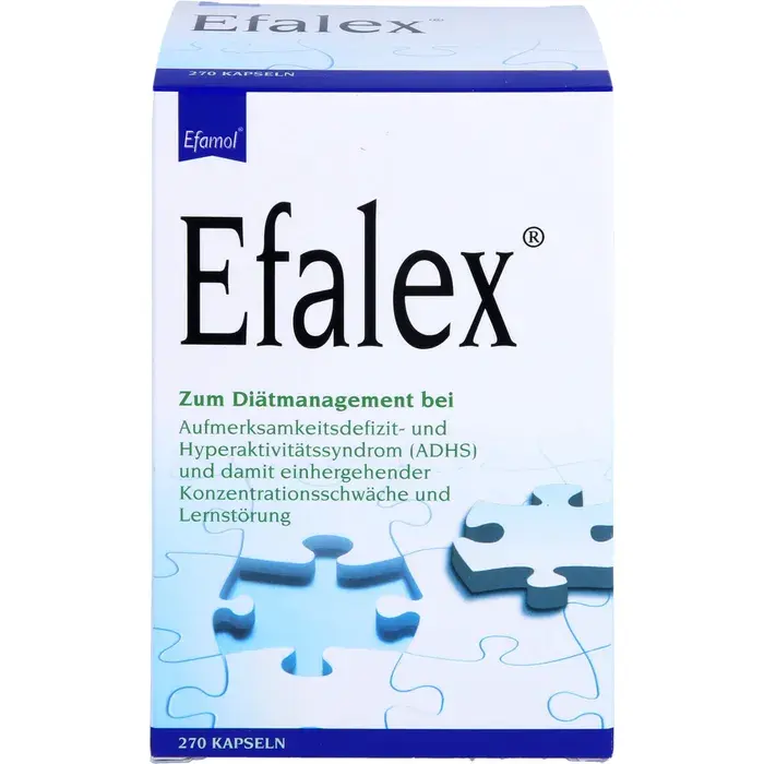 Каждая капсула Efalex содержит сбалансированное, специальное сочетание масла вечерней примулы и рыбьего жира, которые богаты длинноцепочечными полиненасыщенными жирными кислотами (жирные кислоты омега-3 и омега-6). У людей с СДВГ наблюдается недостаток именно данных жирных кислот. Efalex, с его сбалансированной формулой, помогает уменьшить симптомы, связанные с СДВГ и, таким образом, благотворно повлиять на восприимчивость к образованию и фиксацию внимания.