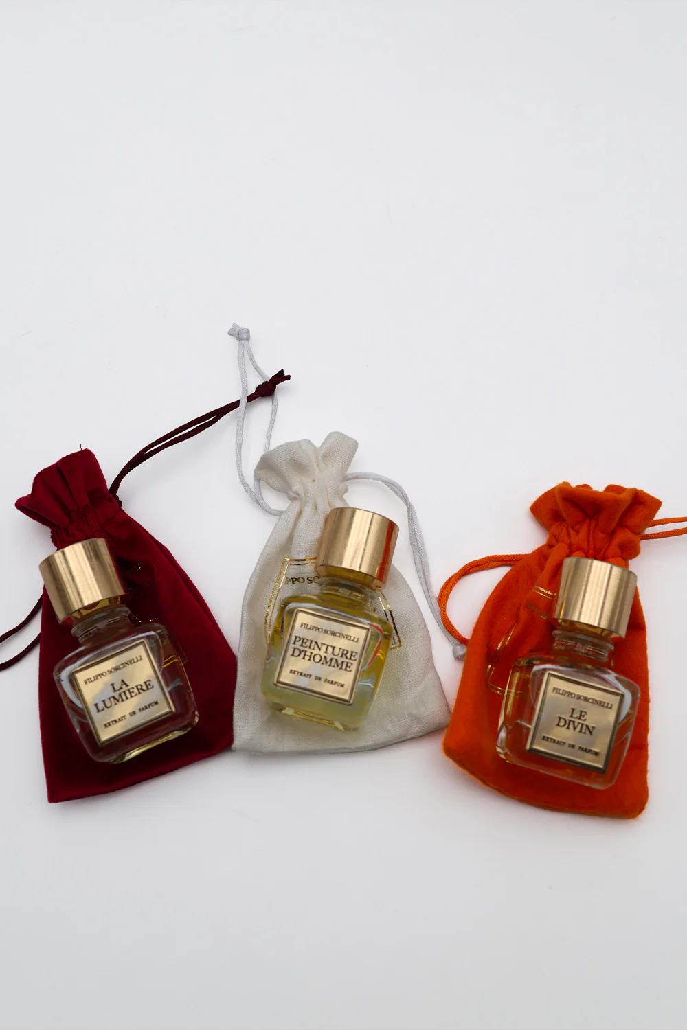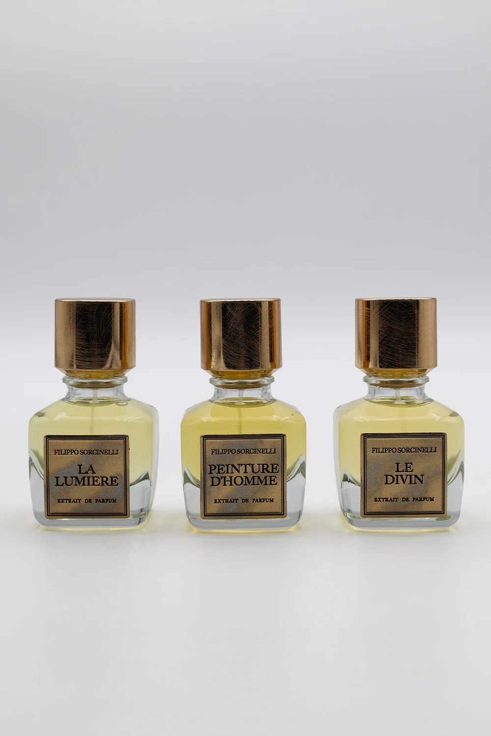 Филиппо проживает искусство как сокровенный диалог, способный превращаться в аромат. Он собрал отголоски трёх полотен Караваджо — «Призвание апостола Матфея», «Мученичество апостола Матфея» и «Святой Матфей и ангел».