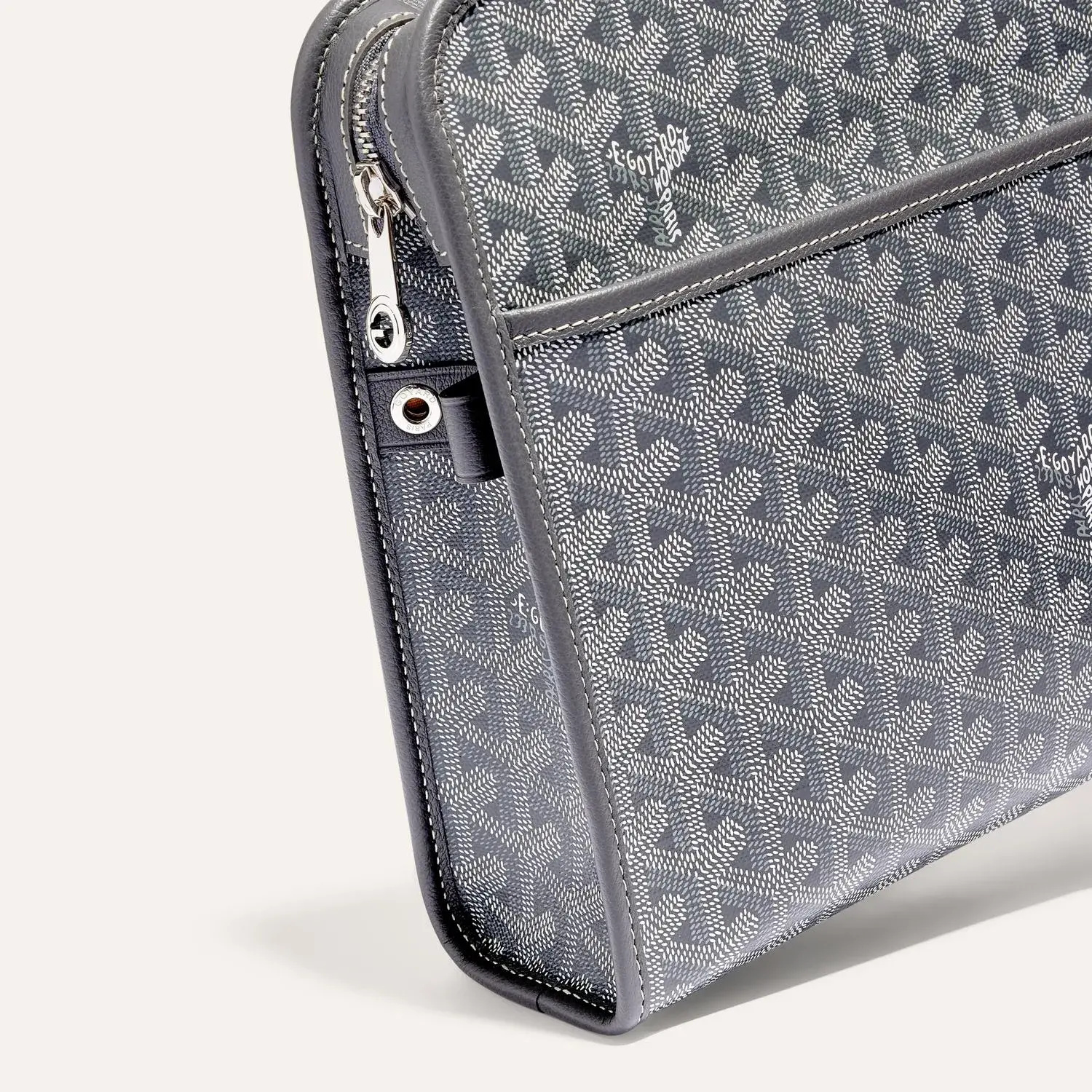 Форма косметички Jouvence идеально подходит для вертикального хранения вещей и предотвращения проливаний. Водонепроницаемая хлопковая подкладка легко чистится, а петличка позволяет закрепить косметичку где угодно.