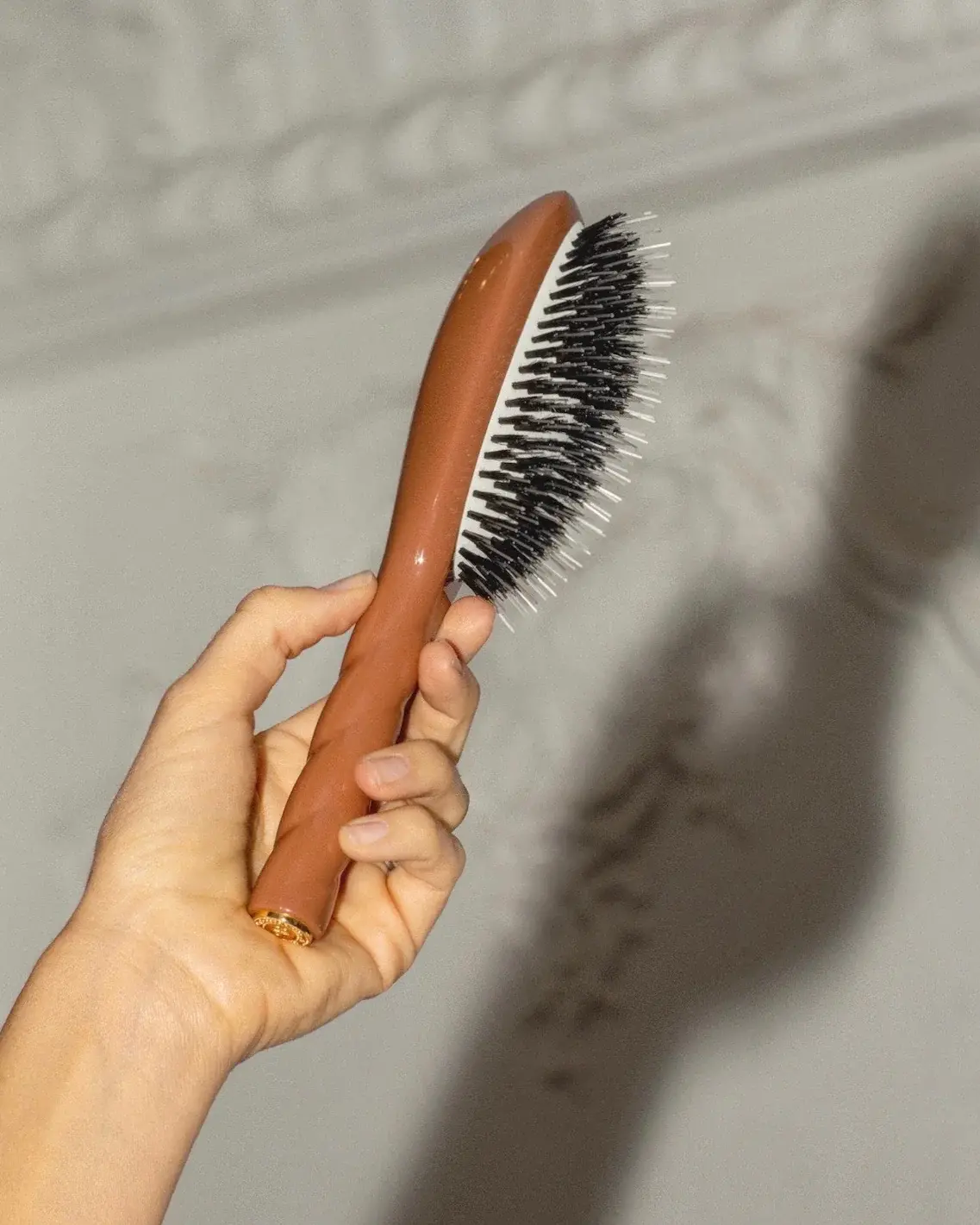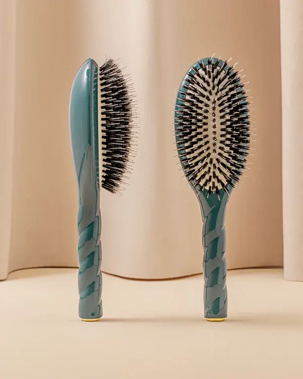 Для максимального эффекта используйте щётку на сухих или влажных волосах, чтобы раскрыть уникальные свойства щетины кабана и нейлоновых волокон. Смешанная композиция щётки делает её идеальным инструментом для укладки! Сочетание 100% кератиновой щетины кабана — точного зеркала структуры ваших волос — и уникальных нейлоновых волокон позволяет распутывать волосы и стимулировать кожу головы.