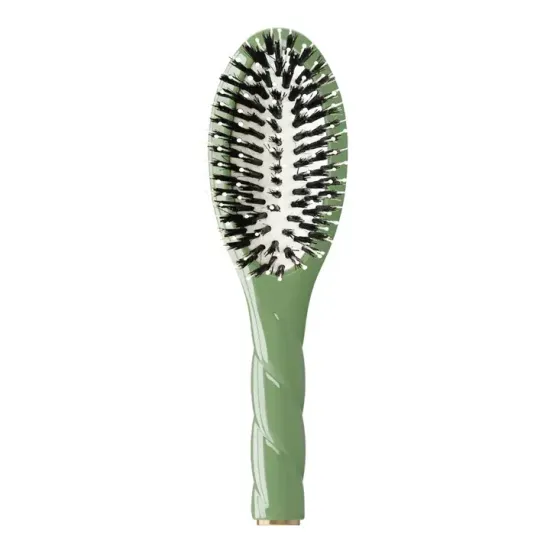 Щетина кабана, состоящая из кератина (белка, присутствующего в волосах), естественным образом восстанавливает структуру волоса. Кроме того, она укрепляет волосы и обеспечивает бодрящий массаж кожи головы без повреждений.