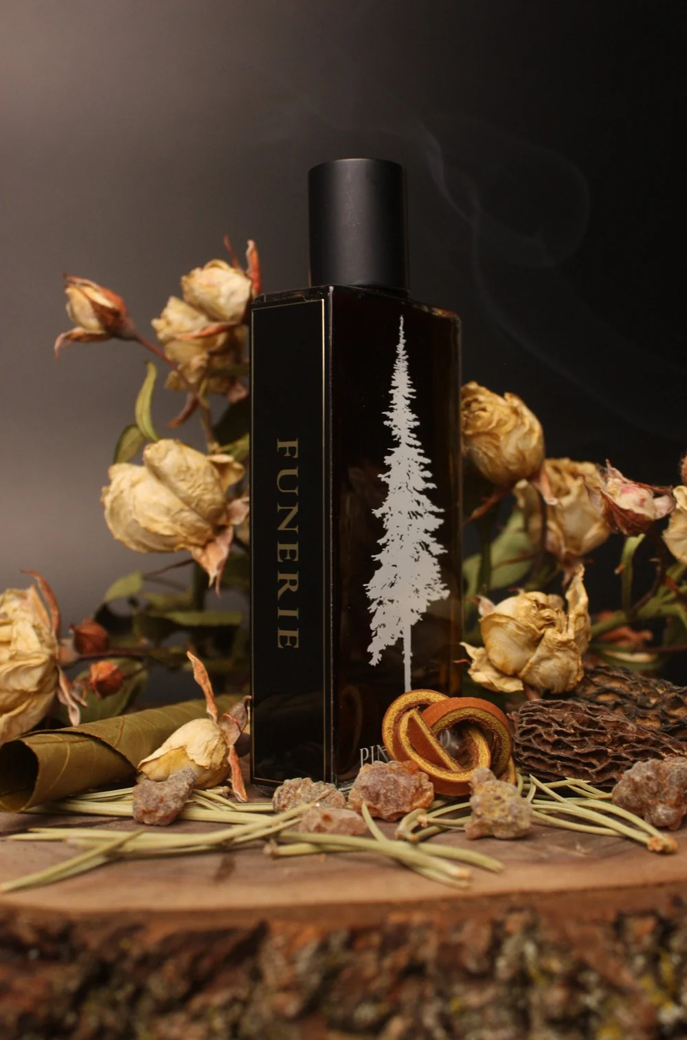 Funerie — это аромат-ритуал, посвященный обрядам мертвых. Саван мрачности окутывает лес, где на обгоревших сосновых досках пируют грибы, а рядом увядают розы, тронутые тленом. Это сложная, мрачная, завораживающая композиция, не имеющая ничего общего с традиционными представлениями о красоте.