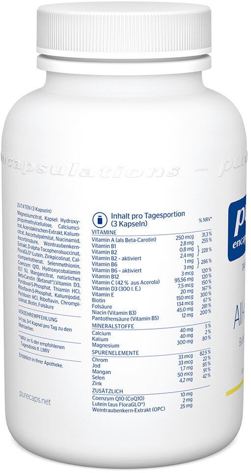 С помощью All-in-one от Pure Encapsulations вы можете ежедневно поддерживать свое здоровье. Содержит двенадцать витаминов, восемь минералов и микроэлементов, а также коэнзим Q10 (CoQ10), лютеин и полифенолы из экстракта виноградных косточек. Независимо от того, испытываете ли вы стресс на работе, у вас нет времени готовить здоровую пищу или вы просто хотите сделать что-то полезное для своего здоровья: с поливитаминными капсулами All-in-one от Pure Encapsulations вы можете легко и всесторонне поддержать свой организм, принимая всего одну капсулу в день.