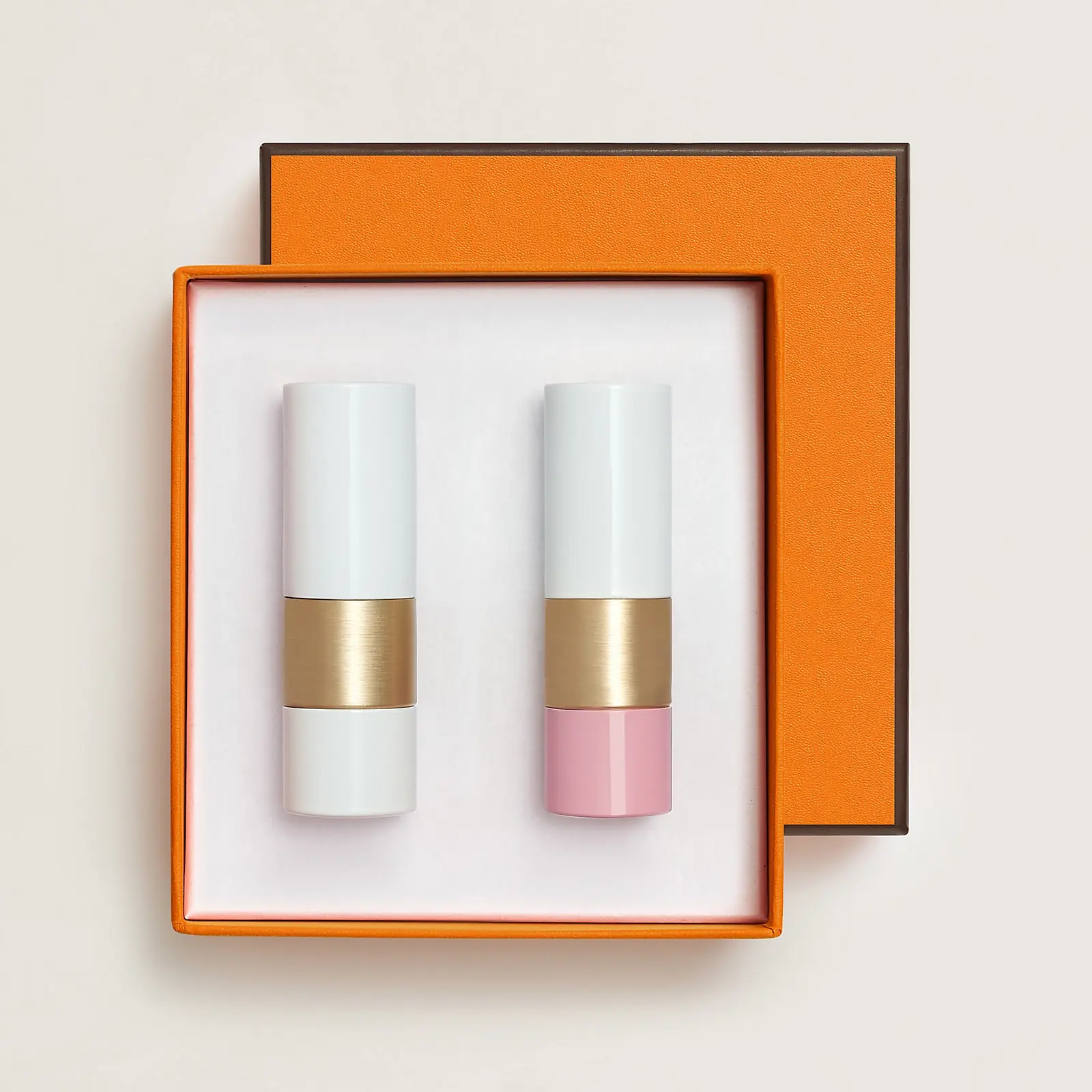 Набор из 2 бальзамов для губ: бесцветного и с розовым оттенком.