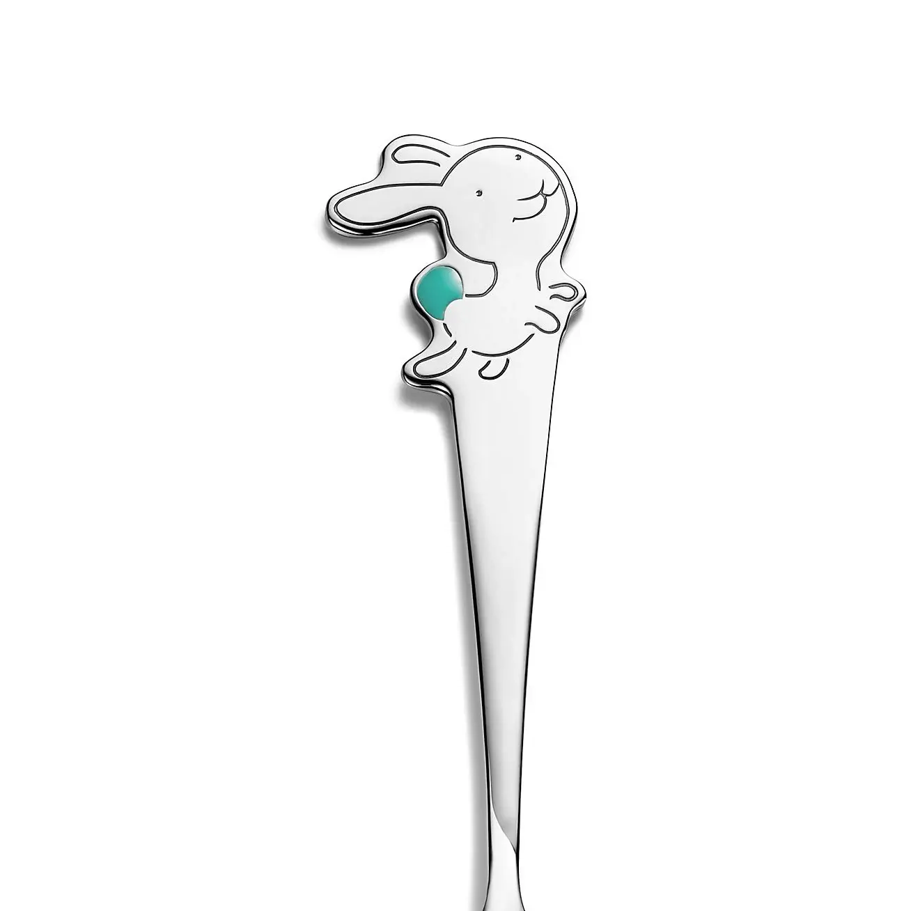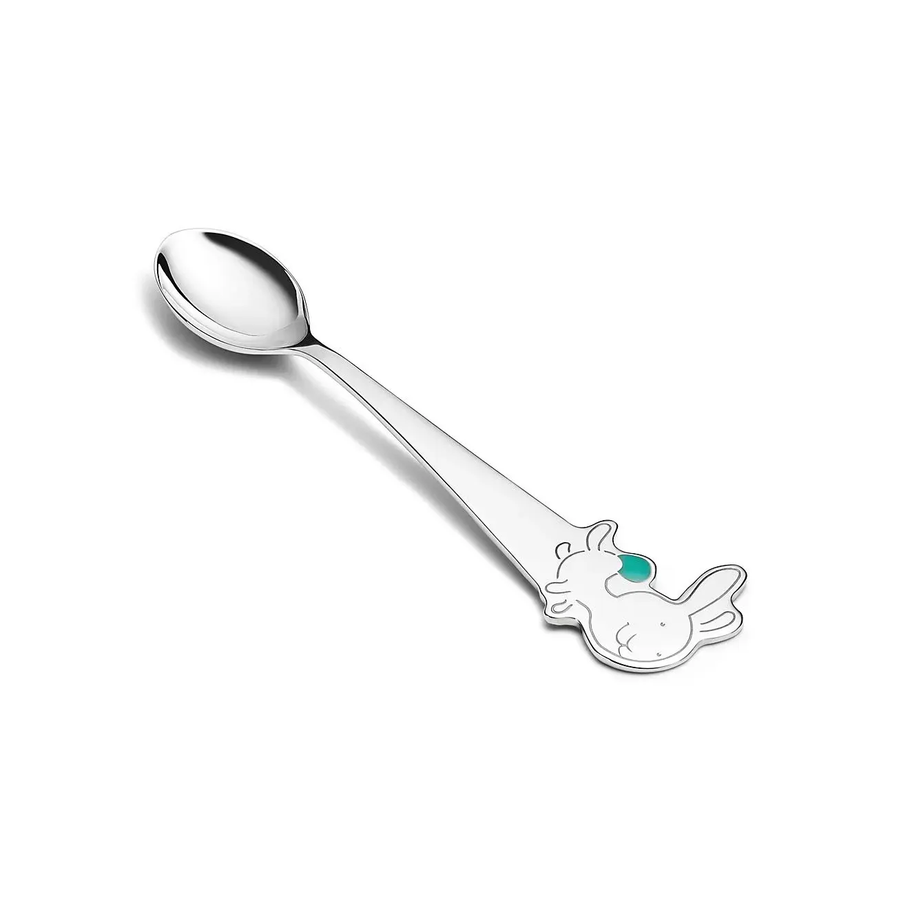 Коллекция Tiny Tiffany («Крошка Тиффани») отмечает важные моменты взросления малышей, переосмысливая культовые мотивы Дома в миниатюре. Эта детская ложечка на первый зубик из стерлингового серебра станет трогательным подарком и памятным сувениром, который сохранит воспоминания о первых достижениях ребенка. Ручку украшает милый кролик Хоппер — персонаж, вдохновленный богатой историей анималистичных мотивов из архивов Tiffany, с изящными деталями из эмали Tiffany Blue.
