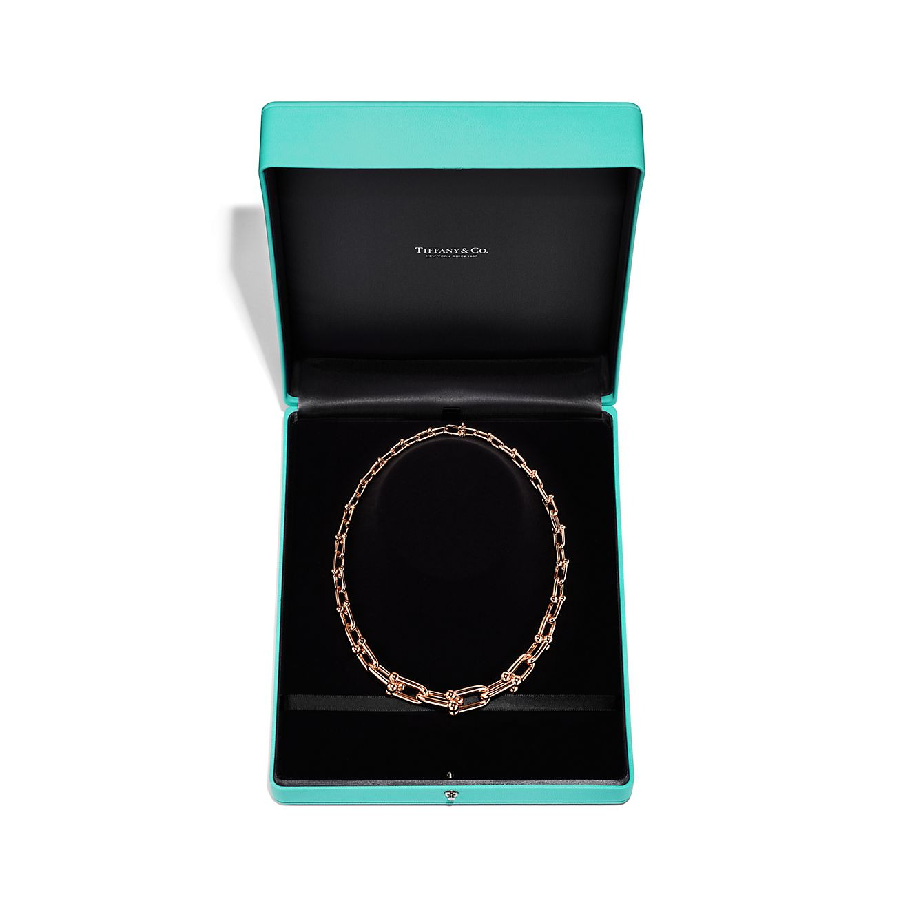 Индустриальные мотивы, вдохновленные архивными эскизами Tiffany 1971 года, переосмыслены через призму современной роскоши. Контраст массивных звеньев и изящного розового золота подчеркивает силу женственности.