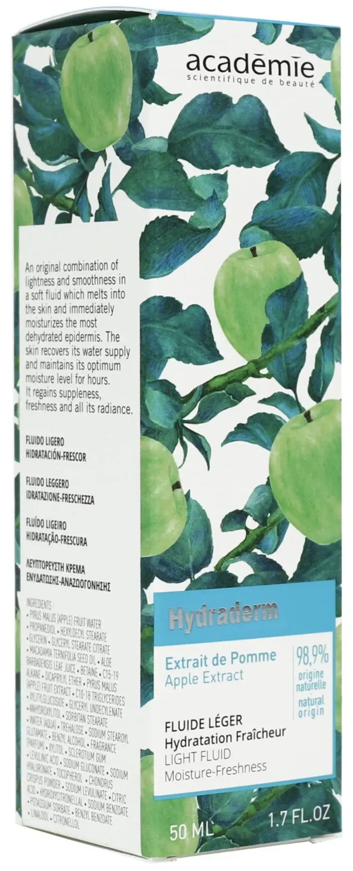 Увлажняющий флюид Fluide Leger Hydratation Fraîcheur из серии ухода Académie Hydraderm обеспечивает интенсивное увлажнение кожи. Освежающий, легкий флюид содержит инновационный комплекс активных ингредиентов, который мгновенно увлажняет и оживляет кожу, а также предотвращает ее обезвоживание. Невесомая текстура легко распределяется и быстро впитывается, не оставляя жирной пленки на коже. Подходит для всех типов кожи.